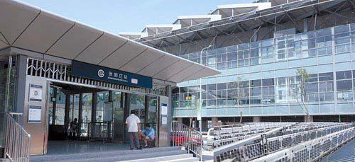 北京地鐵14號線張郭莊站站室、進站口,右下為站室屋頂太陽能光伏板。